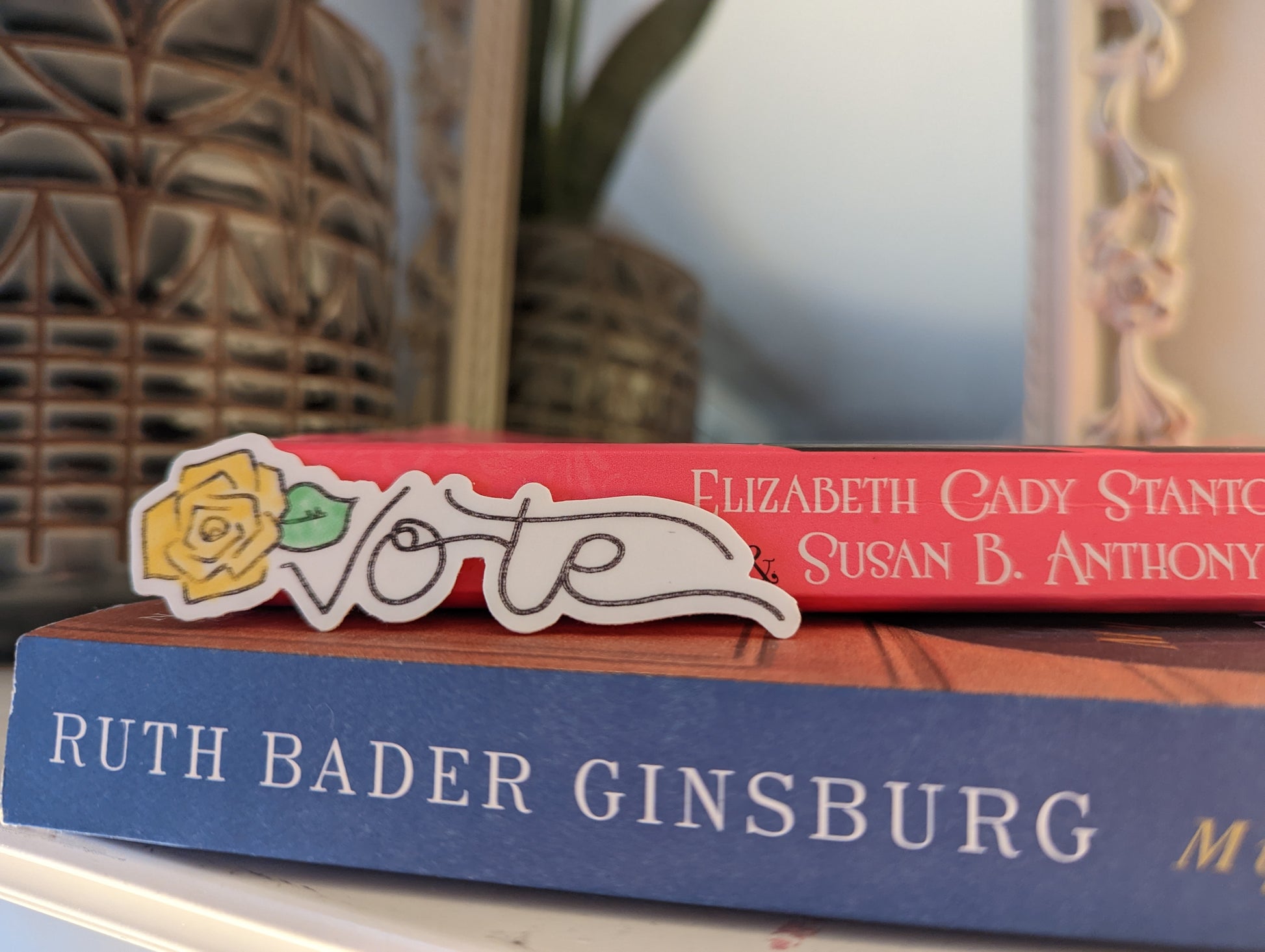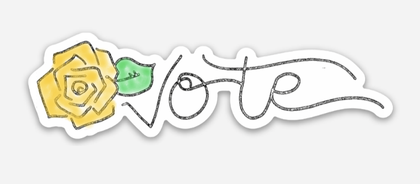 The yellow rose was a symbol of women's suffrage in the early 1900s. Women would wear a yellow rose pin to show that they supported the woman's right to vote. Show your support when you go to the polls!